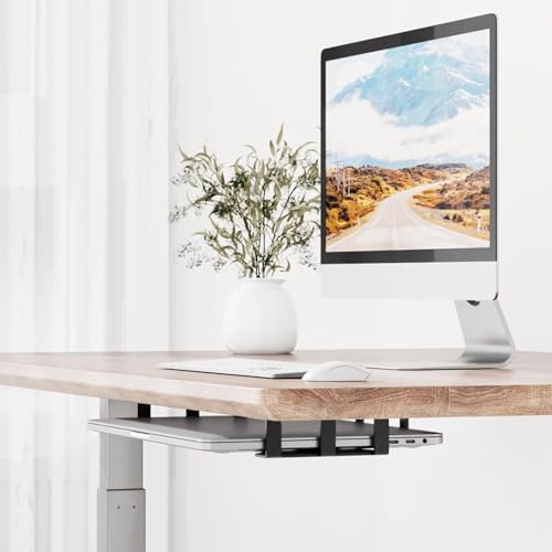 fashion mania - حامل لاب توب تحت المكتب من فاشون مانيا، حامل معدني تحت المكتب للاب توب والتابلت والكيبورد والاجهزة الاخرى، مع سيليكون مضاد للخدش