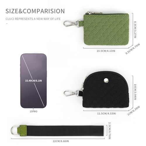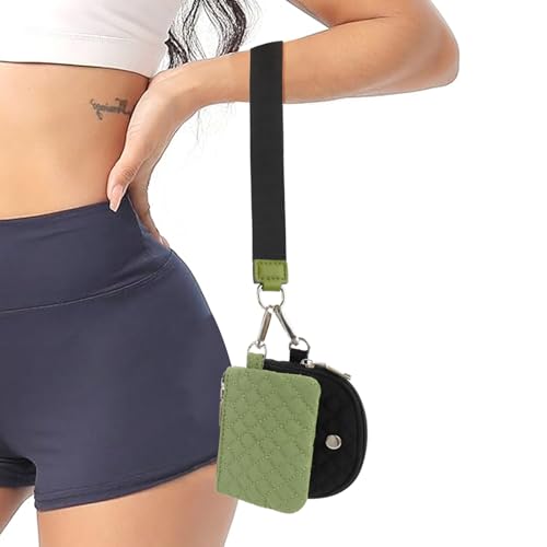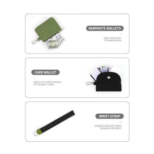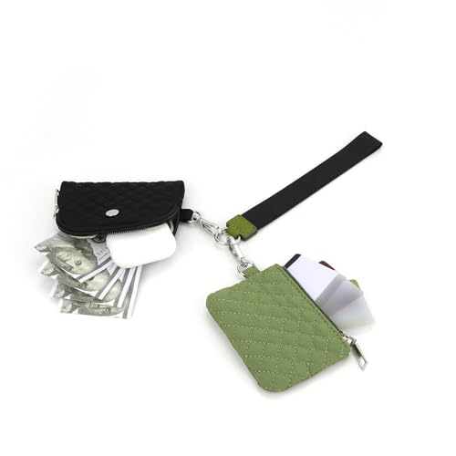 fashion mania - محفظة معصم للنساء من فاشون مانيا، محفظة معصم مزدوجة قابلة للفصل، محفظة صغيرة للعملات المعدنية، محفظة معصم بسحاب دائري (اسود واخضر)