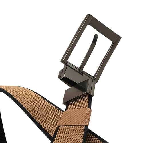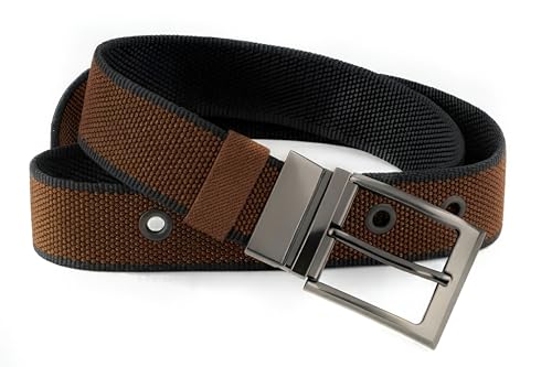 Generic - حزام رجالي عصري، نسيج مقوى باللونين البني والأسود، إبزيم معدني فضي مزدوج يلبس علي الوجهين، تصميم رياضي كاجوال