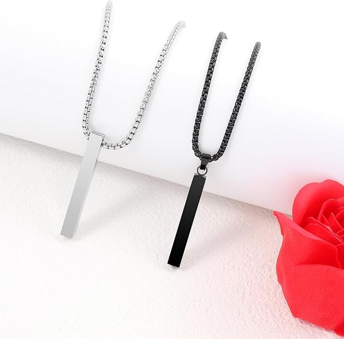 Generic - قلادة رجالي عصرية، قلادة بار سوداء مع سلسلة، مجوهرات رجالية أنيقة
