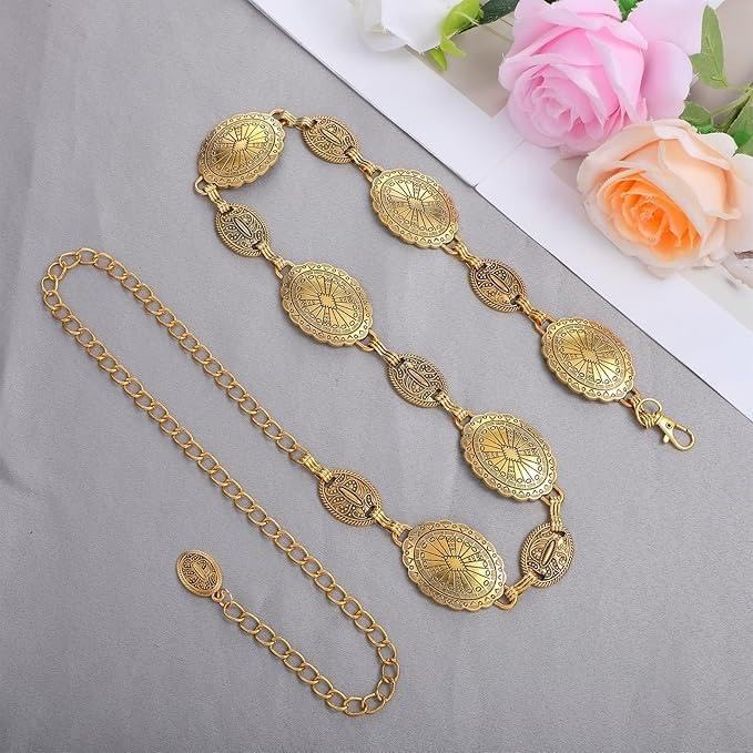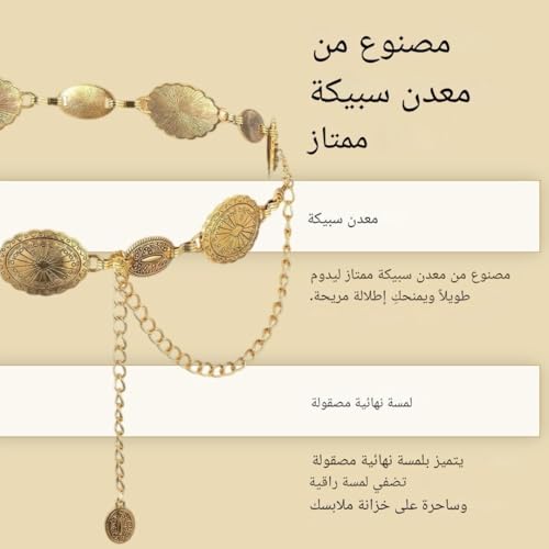 Generic - احزمة معدنية عصرية - حزام دائري انيق مزين بسلاسل معدنية رقيقة، مصمم خصيصًا للنساء اللواتي يعشقن الاكسسوارات المميزة، متين ومريح للاستخدام اليومي.