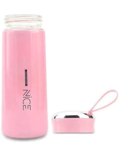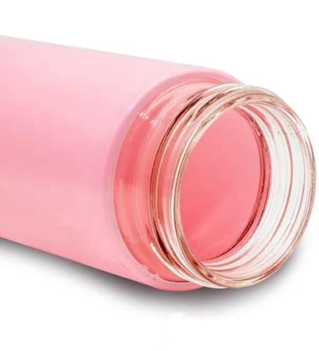 Generic - كوب شرب زجاجي مطلي بالبلاستيك عصري سعة 400 مل مع غطاء ومقبض فضي للمدرسة والمكتب وصالة الالعاب الرياضية بينك - زجاجة مكتب المدرسة وردي .