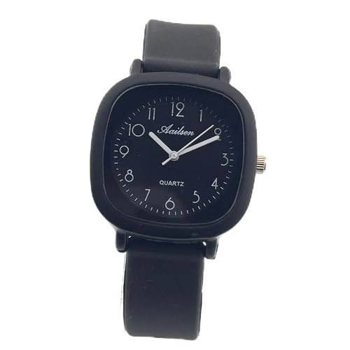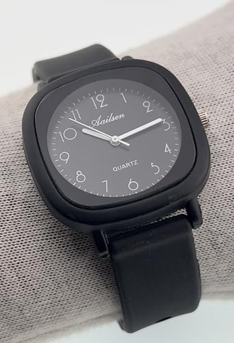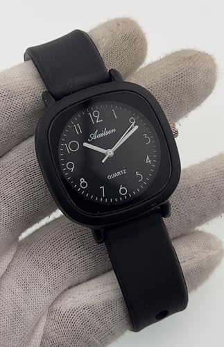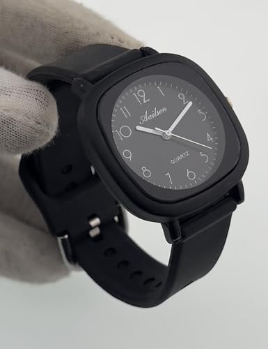 Generic - ساعة كوارتز عصرية - هيكل مربع اسود مع سوار سيليكون اسود، تصميم عصري بسيط