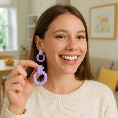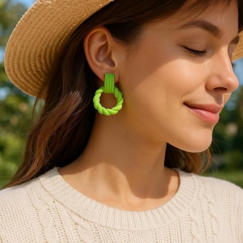 Generic - اقراط عصرية من الراتنج - تصميم حلقي ملتوي عصري بالوان نابضة بالحياة، مكتنزة وخفيفة الوزن، عملية للتألق اليومي، 52 ملم × 35 ملم لاطلالة انيقة