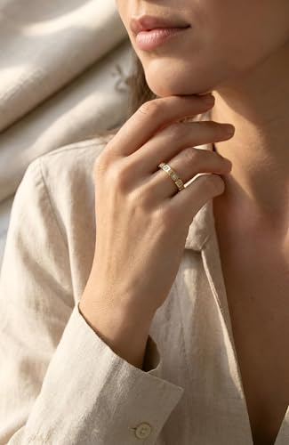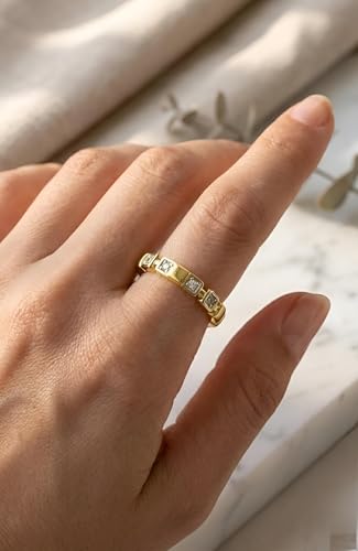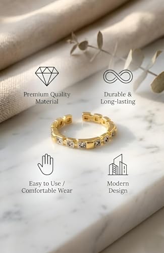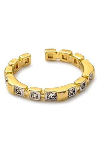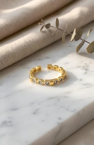 Generic - خاتم عصري - تصميم مفتوح انيق مطلي بالذهب عيار 18 قيراط للنساء مع مقاس قابل للتعديل واحجار زركونيا بنمط عصري متعدد الاشكال