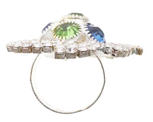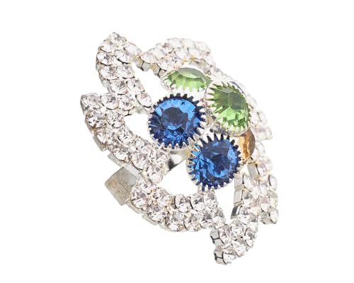 Generic - خاتم أنيق مرصع بالكريستال ملونة لامعة مقاس قابل للتعديل نسائي ، فضي TON-A-1552