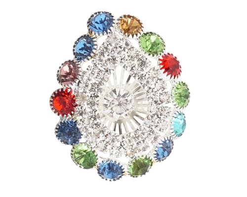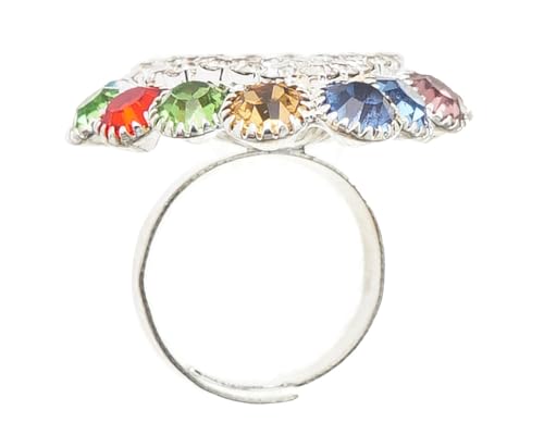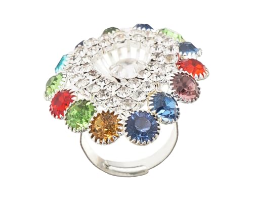 Generic - خاتم أنيق مرصع بالكريستال ملونة لامعة مقاس قابل للتعديل نسائي ، فضي TON-A-1554