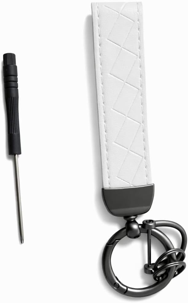 Generic - سلسلة مفاتيح بشكل انيق - ميدالية وسلسلة مفاتيح سيارة ، مناسبة للسيارة والدراجات النارية والعائلة - بتصميم من الجلد والمعدن -عملية بتصميم عصري - لون ابيض - aga