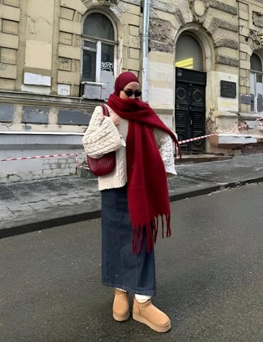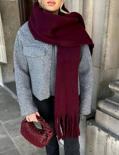 Generic - شال عصري - لف منسوج بلون ازرق فاتح دافئ مع شراشيب للنساء، مثالي للازياء الشتوية الكاجوال والرسمية