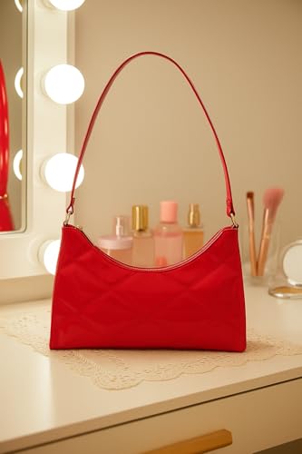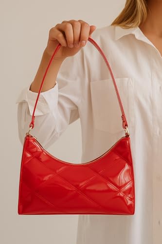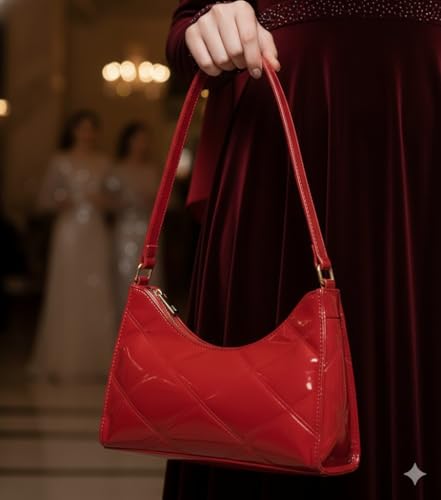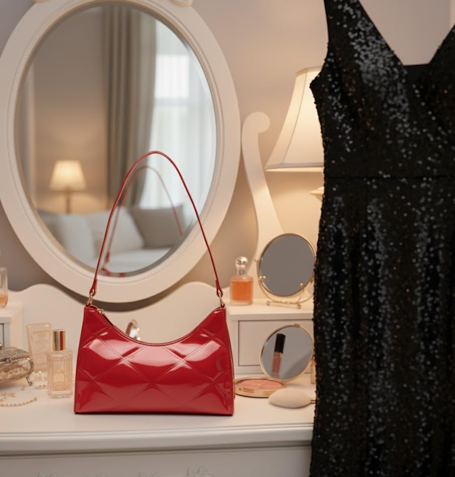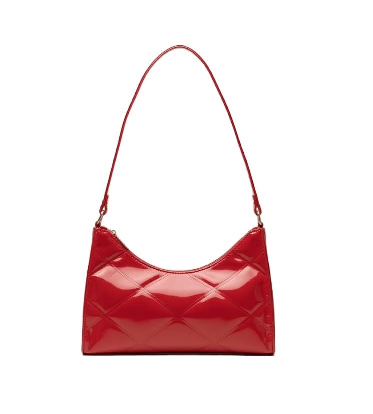حقيبة كتف عصرية، مبطنة بنمط الماس، متوفرة بألوان لامعة متعددة، جلد صناعي، حزام كتف قابل للتعديل