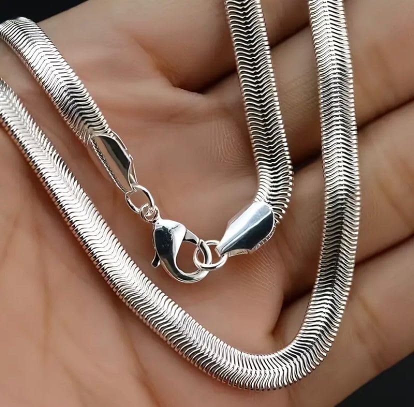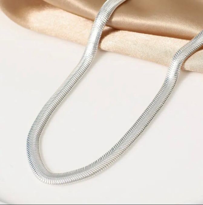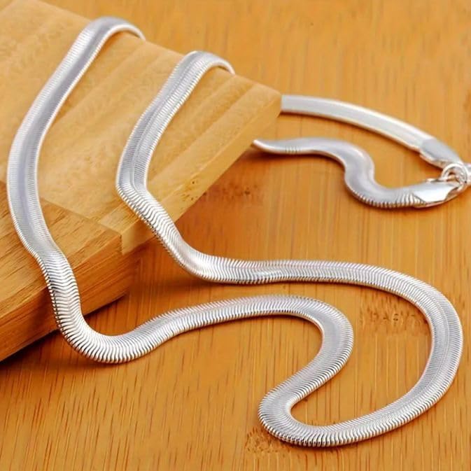 Generic - سلسلة فضية عصرية للنساء ولرجال مطلية بي مياه الفضة المصري الاسترلينية، تصميم أفعواني ناعم، 925 مجوهرات أنيقة