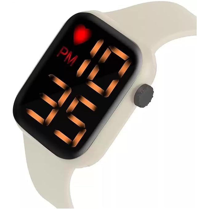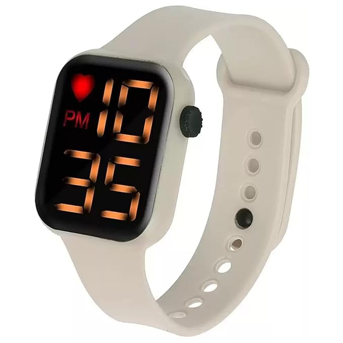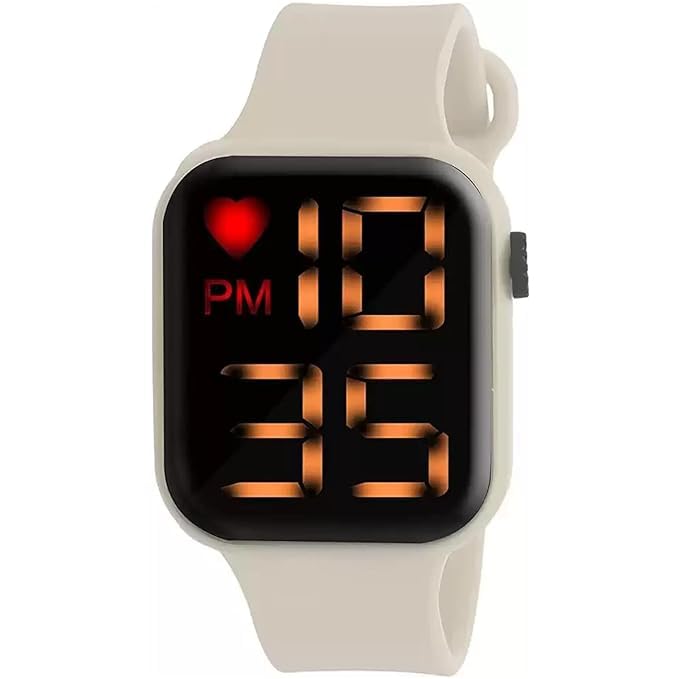 Generic - ساعة يد رقمية رياضية أنيقة بسوار سيليكون قابل للتعديل (بيج)