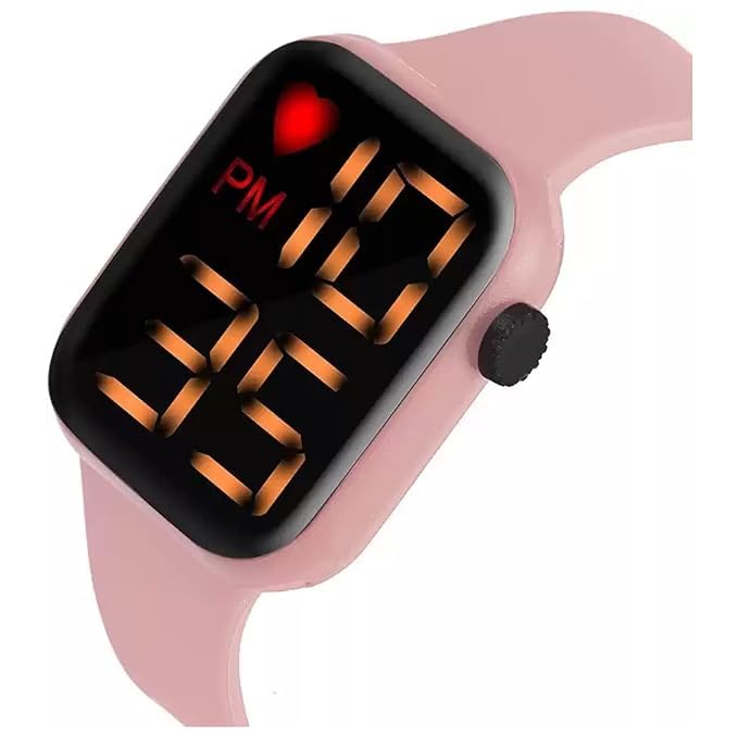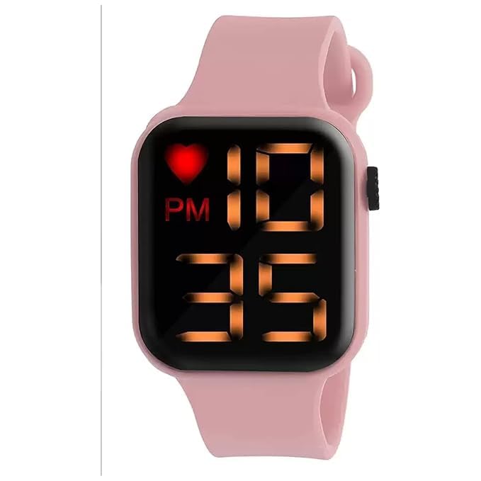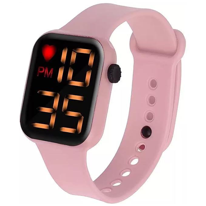 Generic - ساعة يد رقمية رياضية أنيقة بسوار سيليكون قابل للتعديل (بينك)
