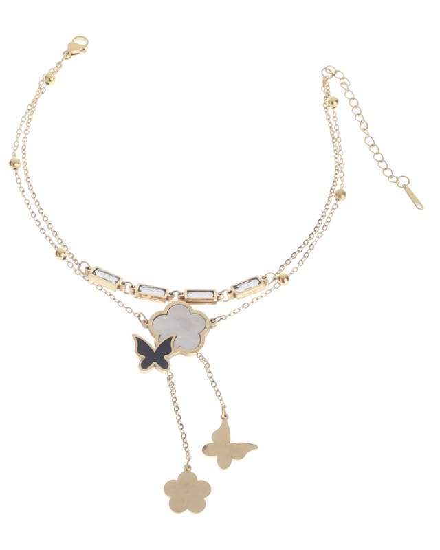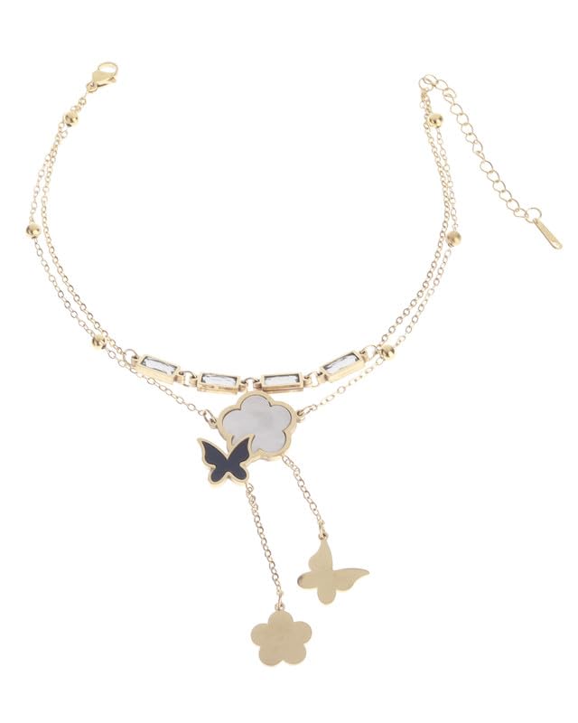 Generic - خلخال أنيق ستانلس ستيل مناسب للاستخدام اليومي والحفلات مقاس قابل للتعديل للنساء ، ذهبي H-S-ANKL-12