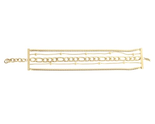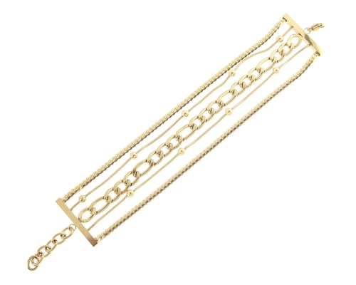 Generic - انسيال ستانلس ستيل انيق 5 دور بأشكال مختلة مناسب للاستخدام اليومي والحفلات مقاس قابل للتعديل للنساء ، ذهبي H-S-ANS-27