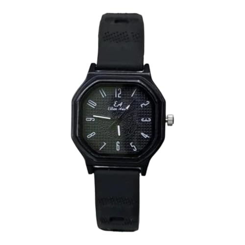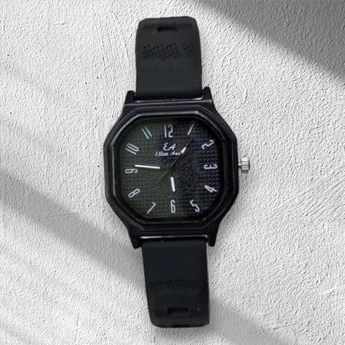 Generic - ساعة يد أنيقة، هيكل ثماني الأضلاع، حزام أسود مطاطي، مينا أسود مع أرقام مضيئة ترند