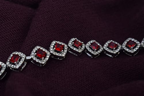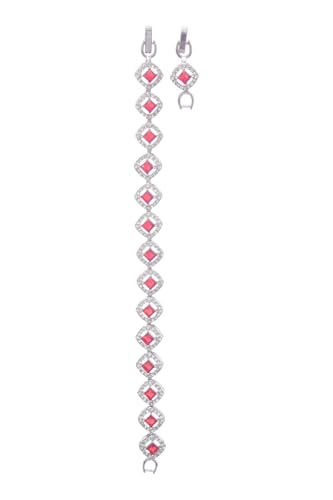 Generic - سوار انيق وعريض استانلس ستيل بتصميم لطيف مقاس قابل للتعديل نسائي ، فضي واحمر TON-A-1436