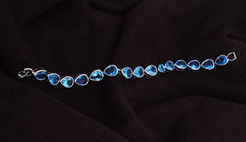 Generic - سوار انيق وعريض استانلس ستيل بتصميم لطيف مقاس قابل للتعديل نسائي ، فضي وفيروزى TON-A-1433