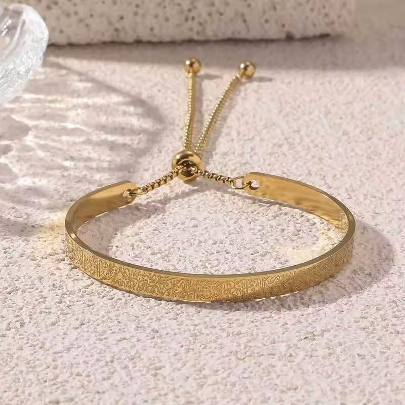 Generic - سوار نسائي ذهبي أنيق مع نقش منحوت، قابل للتعديل مع سلسلة منزلقة، إكسسوار يومي عصري