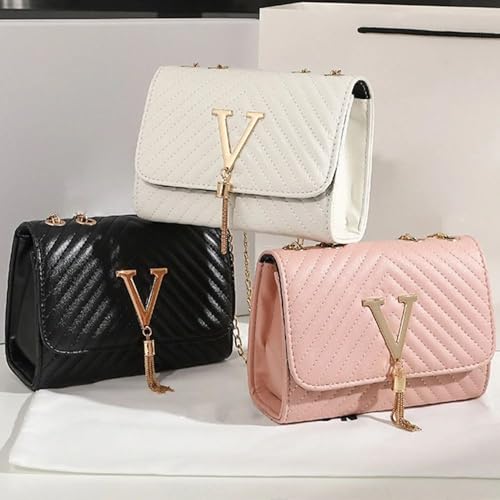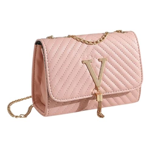 Generic - حقيبة يد نسائية راقية باللون الوردي اللامع، بمقبض علوي وسلسلة كتف قابلة للتركيب، بتصميم عصري