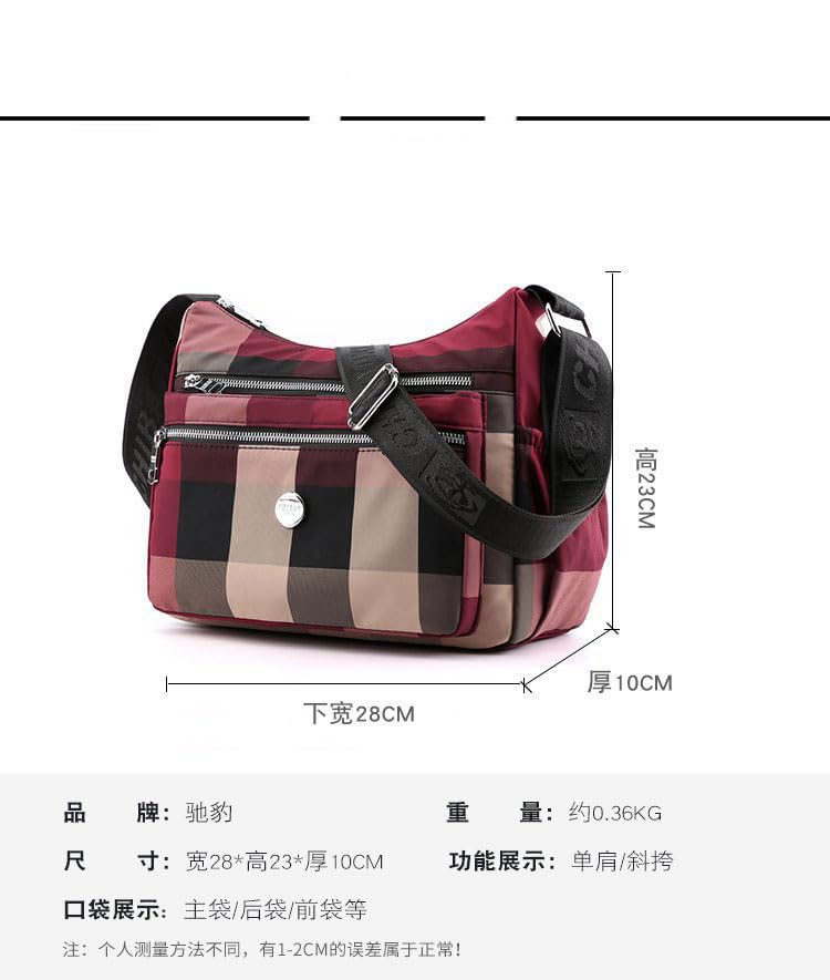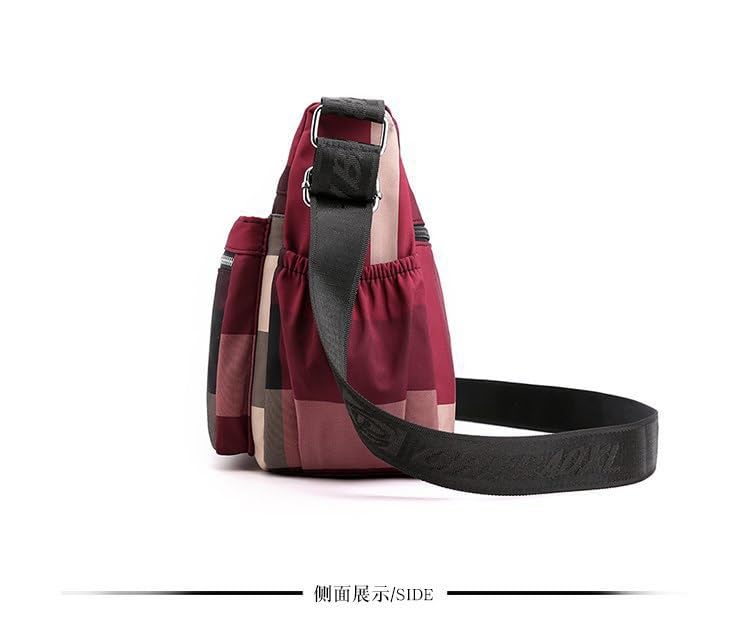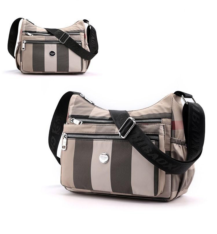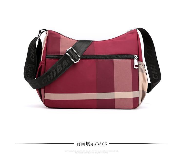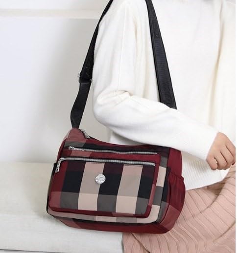 Generic - شنطة كتف نسائية عصرية، نمط كاروه، مع سوست متعددة وحزام قابل للتعديل