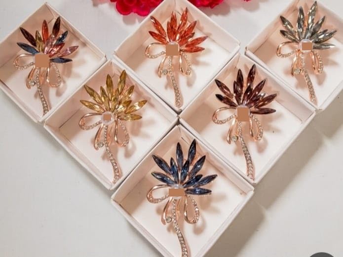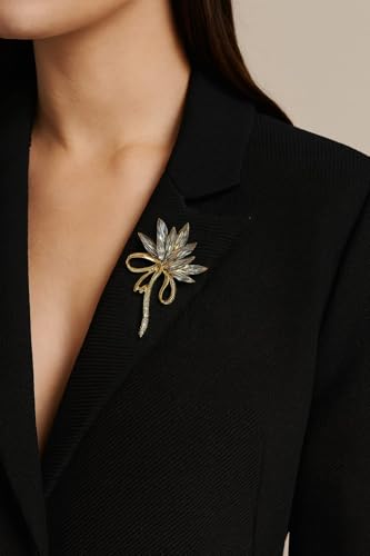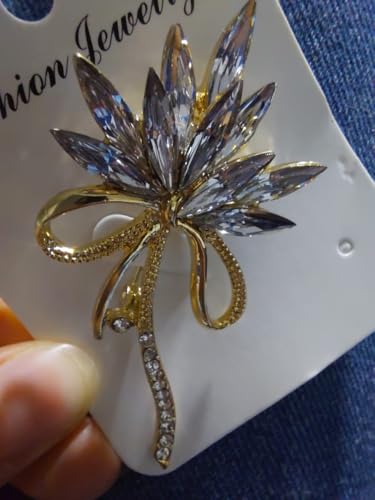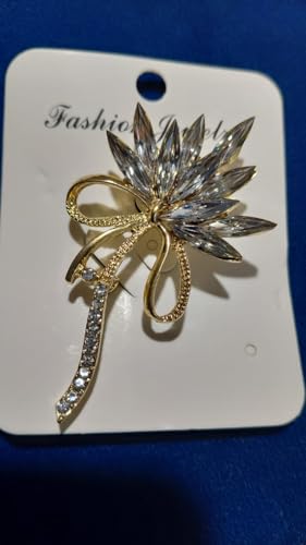 Generic - Fashion World دبوس زينة كريستال فاخر، تصميم زهرة بأوراق كريستالية، مجوهرات أنيقة للنساء