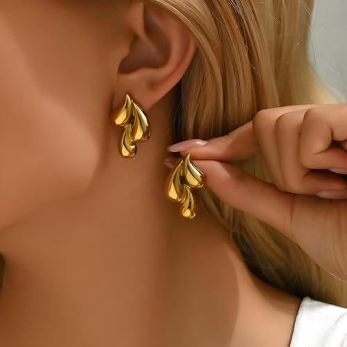 Generic - اقراط عصرية - اقراط مطلية بالذهب عيار 18 قيراط، تصميم هندسي، هدية انيقة للنساء للمناسبات والحفلات