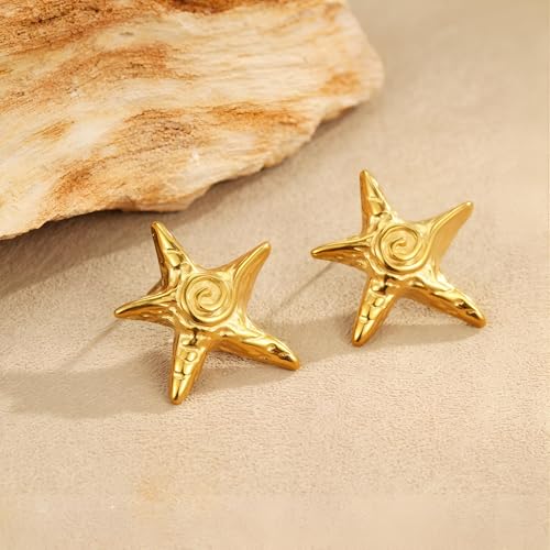 Generic - اقراط عصرية - تصميم فريد من نوعه على شكل نجمة شاطئية للنساء، مجوهرات عصرية دائمة مطلية بالذهب، اكسسوار صيفي مثالي