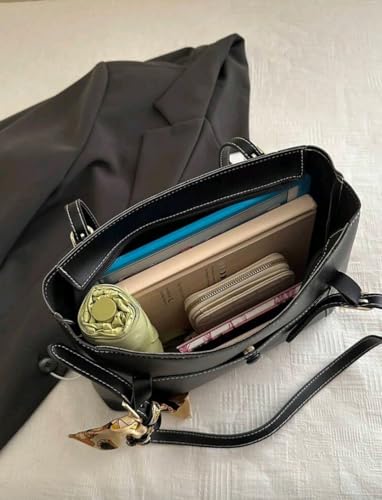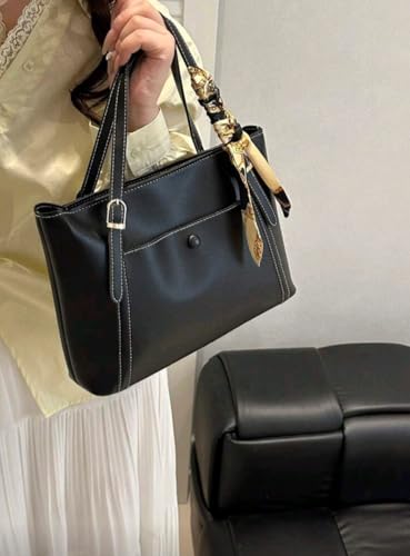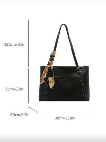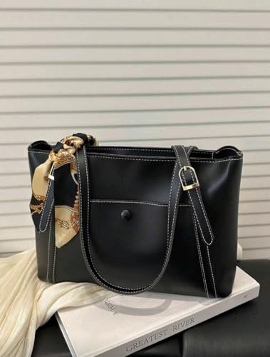 Generic - شنطة كتف انيقة وبسيطة بلون سادة وجيب جانبي مع وشاح