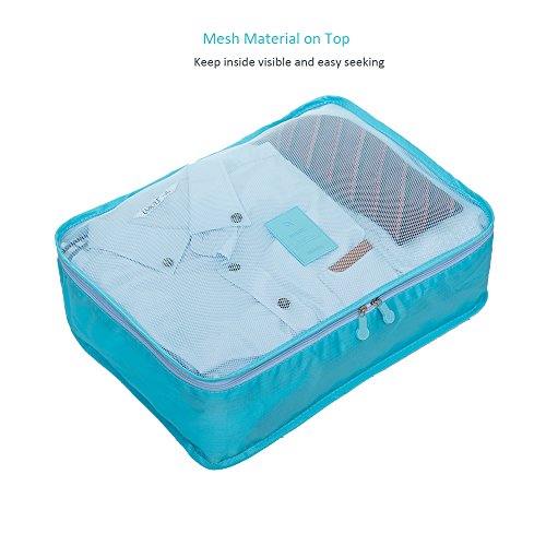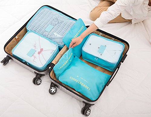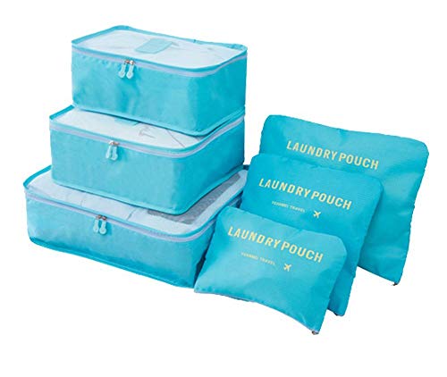 Generic - طقم من 6 شنط سفر بتصميم مكعبات لتنظيم وتعبئة الامتعة، مع شنطة لملابس الغسيل، لون ازرق فاتح من فاشون اب، نايلون
