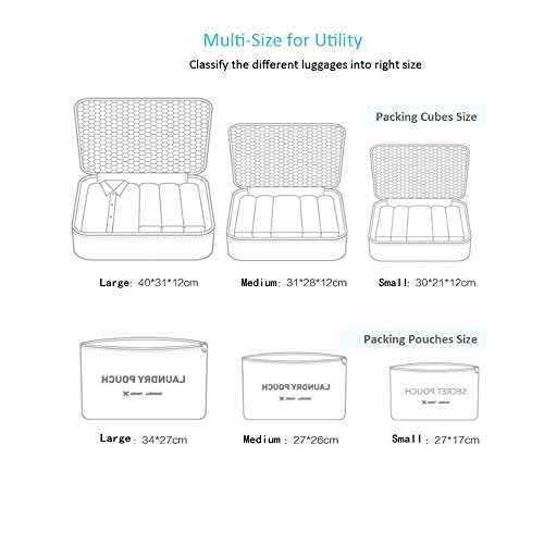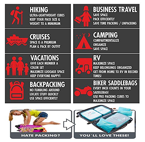 - متعددة الاستخدامات وبسيطة - تتناسب هذه المجموعة المكونة من 6 قطع بشكل مثالي مع معظم حقائب السفر وحقائب الظهر وحقائب الأمتعة وحقائب عطلة نهاية الأسبوع. بعبارة أخرى، يمكن لمكعبات التعبئة أن تجعل رحلتك أبسط بغض النظر عما إذا كنت في مغامرة في حقيبة الظهر، أو تتجه في رحلة عمل. استخدم المقاس الأكبر للحفاظ على سترات العمل الخاصة بك آمنة، والأصغر للحفاظ على الكابلات والأجهزة الكهربائية آمنة!