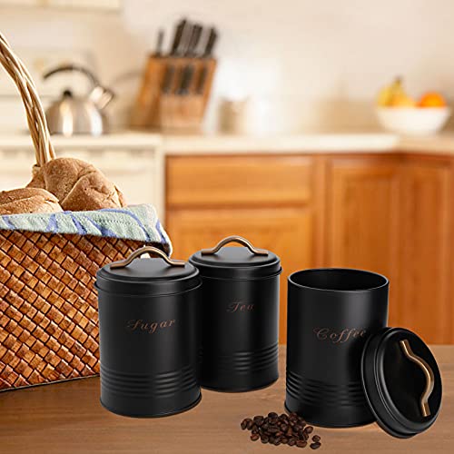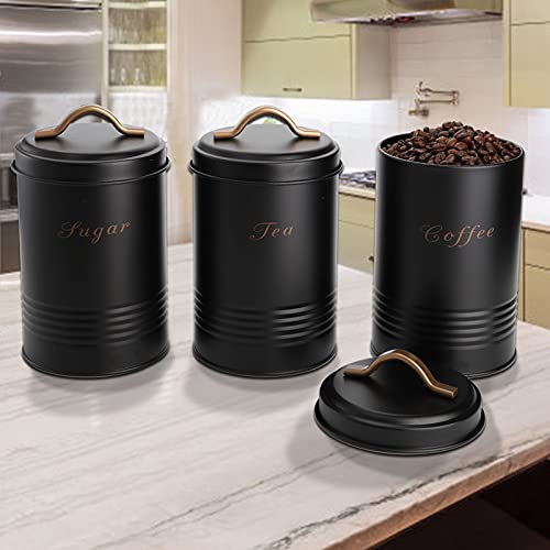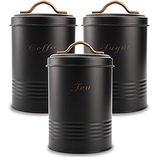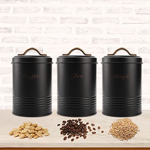 Fasmov - مجموعة علب مطبخ مكونة-3 قطع-الشاي والقهوة والسكر-فاسموف صناديق تخزين المطبخ حاويات لور ديكور المزرعة أسود