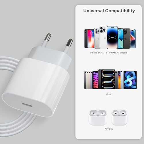 - 【توافق واسع】شاحن USB C 20 واط، كيبل شحن متوافق مع ايفون 14/14 برو/14 برو ماكس/13/13 برو/13 برو ماكس/13 ميني/12 برو/12 برو/12 برو/12 ميني/ماكس/11/11 برو/11 برو ماكس/XS/XR/XR ماكس/8/8 بلس/7/7 بلس. قابس متوافق مع سماعات ايربودز وايباد وما إلى ذلك.