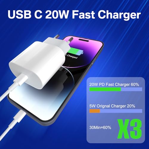 - 【شاحن USB نوع سي 20 واط】يتميز الشاحن السريع بقدرة خرج 20 واط، وهو مناسب جدًا لسلسلة ايفون 14/13/12/11، والتي يمكن شحنها من 0% إلى 50% في 30 دقيقة، وهو أسرع بثلاث مرات من الشاحن الأصلي بقدرة 5 واط.