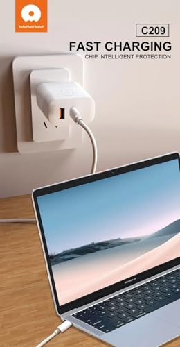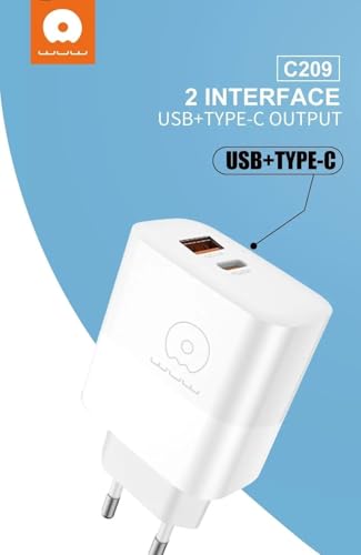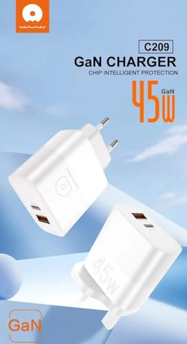 WUW - شاحن سريع بقوة 45 وات بي دي + 18 وات من كيو سي، بتقنية جي ايه ان، مزود بمنافذ USB-نوع ايه تنوع ايه، مع حماية ذكية، أبيض