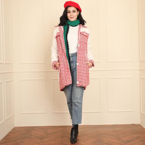 FRIDAYIN - معطف طويل بطية صدر كلاسيكية منقوشة بالوان متباينة وجيب وسحاب ورباط خصر واكمام عادية من فاست فاشون