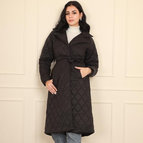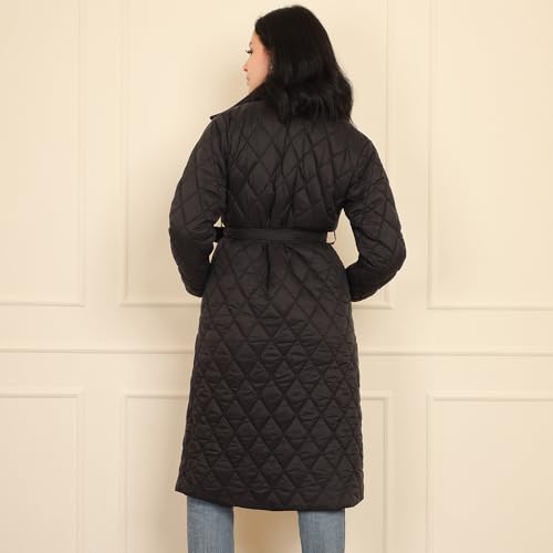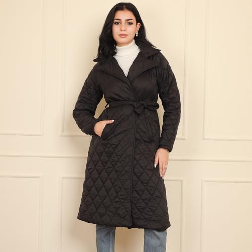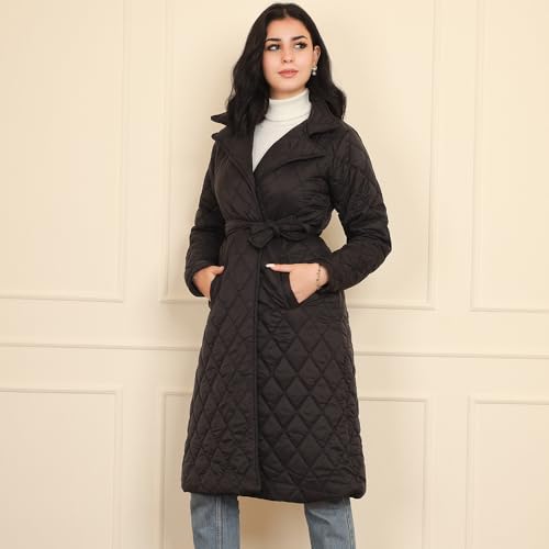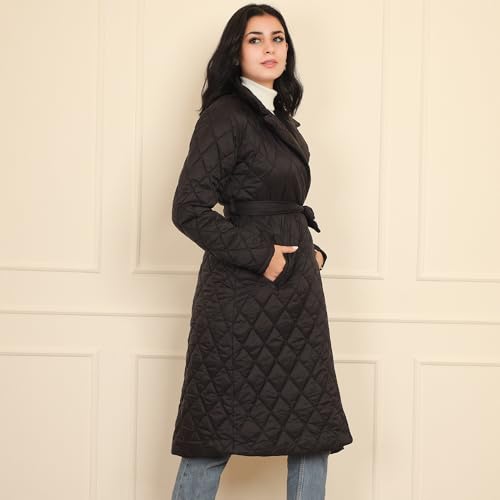 FRIDAYIN - Fast fashion Suit collar Solid color Belt Pocket Regular sleeve Padded Coats