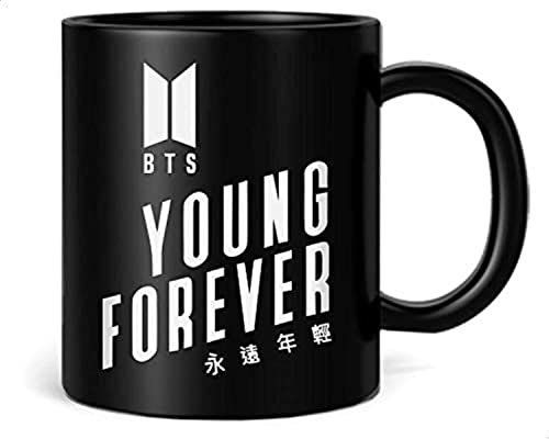 Generic - مج بطبعة بي تي اس يانج فوريفر من فاست برينت – اسود وابيض، سيراميك