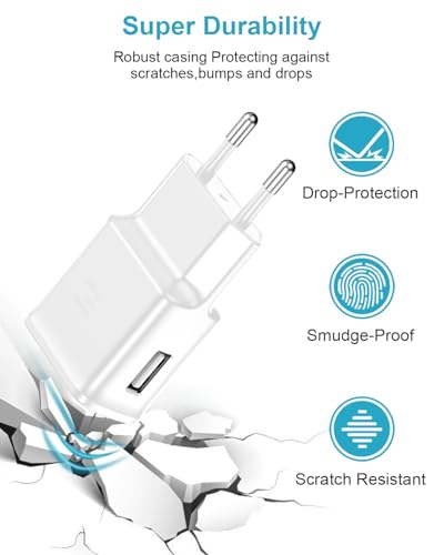 Nipow - شاحن USB بتقنية الشحن السريع مع كابل نوع C لموبايل سامسونج جالاكسي S8، S8+ ،S9 ،S9+ ،S10 ،S10+ ،S10e ،A50 A51 ،A72 ،A12 ،A13 ،A14 ،A15 ،A32 ،A42 شبكة الجيل الخامس 5G، نوت 8/9
