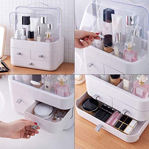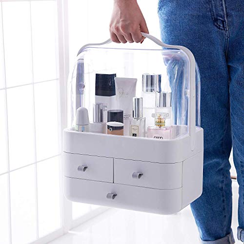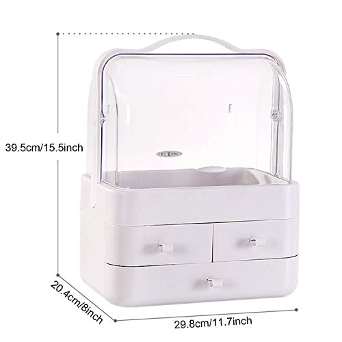 Faster - منظم مكياج مقاوم للغبار، علبة عرض مستحضرات التجميل الشفافة، صناديق تخزين المكياج والمجوهرات بسعة كبيرة ورائعة على سطح الطاولة، اكريليك، ابيض، من فاستر