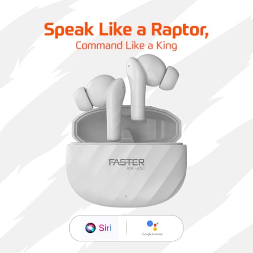 FASTER - فاستر سماعات اذن بلوتوث لاسلكية داخل الاذن بخاصية الغاء الضوضاء اي ان سي من رابتور - سماعات بلوتوث لاسلكية 5.3 وقت تشغيل 30 ساعة مشغلات 10 ملم ايه ان سي IPX4 (ابيض)