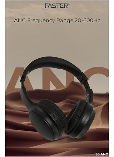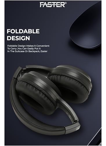 FASTER - فاستر سماعات راس بلوتوث S5 فوق الاذن مع ميكروفون - بلوتوث 5.3، ايه ان سي، بطارية طويلة، صوت هاي فاي، تصميم قابل للطي، مريحة للموسيقى والمكالمات والسفر والعمل والدراسة