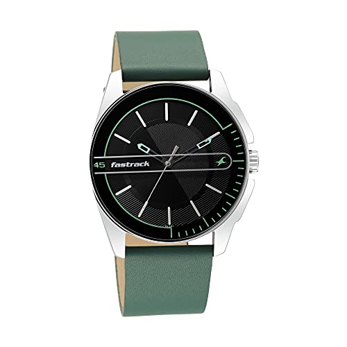 Fastrack - ساعة انالوج بعقارب ومينا سوداء للرجال من فاست تراك - 3089SL16، سوداء، بسوار, أسود