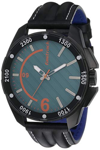 Fastrack - ساعة انالوج بعقارب بمينا اخضر بخاصية عرض التاريخ واليوم للرجال من فاستراك، موديل 3084NL03