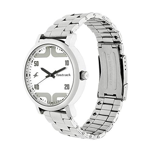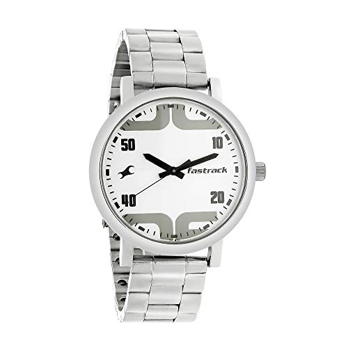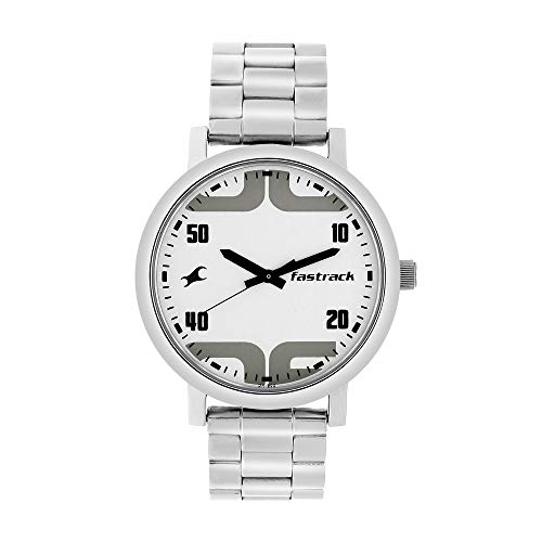 Fastrack - ساعة يد للرجال من فاست تراك، مينا بلون ابيض بنظام عرض انالوج بعقارب، موديل 38052SM04, فضي