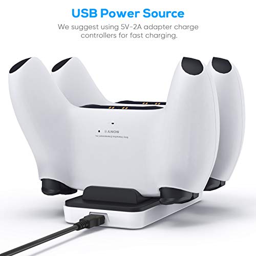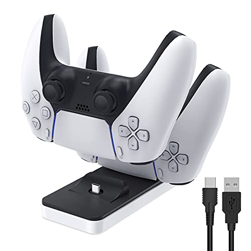 FASTSNAIL - قاعدة شحن مزدوجة من فاست سنيل لذراع التحكم في جهاز اللعب بلاي ستيشن 5 دوال سينس مع كابل USB-C، يو اس بي