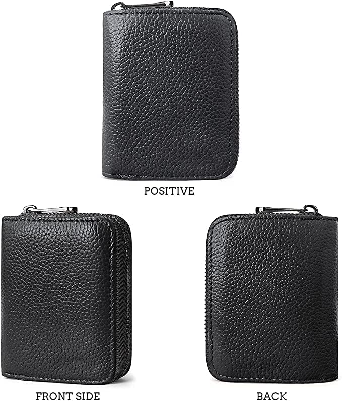 FATFA - حامل بطاقات الائتمان بسحاب للرجال والنساء من الجلد الطبيعي محفظة اسود