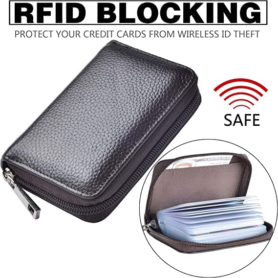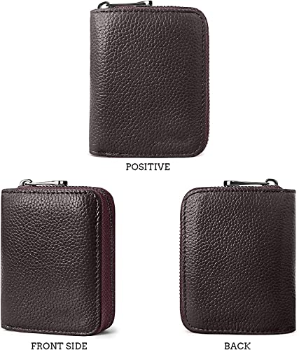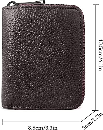 FATFA - حامل بطاقات الائتمان بسحاب للرجال والنساء محفظة من الجلد الطبيعي لبطاقات بني