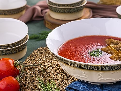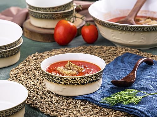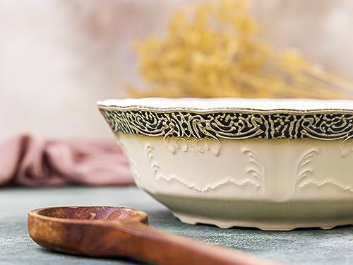 - مقاس مقسم بشكل مثالي: يمكن أن يتماشى المنتج بشكل مثالي مع أي شيء؛ ما يعزز يومك الرائع. سيبدو طعامك المميز رائعًا بقدر مذاقه عند تقديمه في الصينية الجذابة المصنوعة يدويًا من البورسلين.