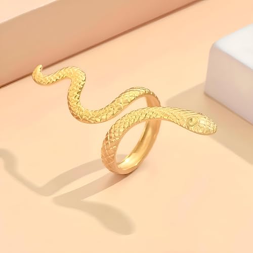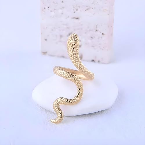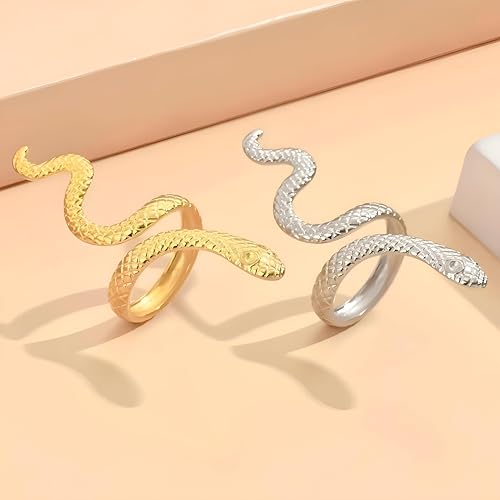 Generic - خاتم على شكل ثعبان - خاتم أنيق من الفولاذ المقاوم للصدأ بتصميم ثعبان متصل يدمج الفن والقوة والغموض في اكسسوار واحد لا يُنسى